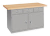 Complete with four 24" x 14" x 4" drawers. Cabinet rests 6" high base. Drawers are equipped 1" deep tray for small items. Bench riser includes pegboard and electrical outlet strip. Dimensions: 30"D x 60"W x 33.5"H. Laminate Top.