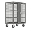 Valley Craft’s 48 x 24" Security Cart is the ideal way to securely transport and store a variety of supplies, products, and other valuables. This cart is constructed from heavy duty 12 gauge steel in order to provide optimal security. The cart’s load capacity is 2, lbs. and easily maneuvers on (4) large 8” non-marking rubber casters (2 rigid, 2 locking swivel). A full width ergonomic handle is included on one end that extends 3” for easy push/pull maneuvering. Welded steel wire grid panels (2x2”) provide visibility and ventilation while maintaining enclosed security and protection. (2) Adjustable shelves are included, adjustable on 2" increments. By utilizing a flush mount access T-handle (keyed), these carts save space when stored side by side, and eliminates clumsy extended handles that get snagged through doorways or narrow workspaces. The flush T-handle lock is complete with a 3-point steel locking system that secures the dual hinged easy-swings doors. Security carts are strategically sized at 48”L x 3”W x 66”H to optimize both storage and handling. Enhance your security cart system with a variety of accessory options (sold separately). Optional accessories include shelves, hitch systems, fork pockets, additional handles, and electronic locks. (2) Adjustable shelves are included. Shelves are a great way to maximize the interior space while customizing it to fit your application. Each shelf is constructed of heavy 14 gauge steel, has a 25 lb. capacity, and is adjustable on 2” increments. Hitch systems allow you to hook multiple security carts together and helps reduce the number of trips or personnel needed. Fork pockets can be easily bolted to the underside of the security cart using predrilled holes, accessed from the length sides. (1) Removable handle is included, (1) additional can be added to the opposite side to provide the ability to easily push/pull from either end. Valley Craft’s Security Carts have a powder coat paint finish for a premium look that holds up over time. The premium blue color can aid in organizing workflows and supporting 5S initiatives. Products are shipped fully assembled, ready-to-use, and are made in the U.S.A.