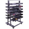 Valley Craft’s Double-Sided Heavy Duty A- Frame Cart provides mobile and customizable solutions for a variety of workstations and storage areas. This heavy duty 12 gauge, fully welded, cart is 38”W x 3”D x 63”H for optimal storage and handling. With a robust 2,5 lb. capacity, this Heavy Duty A-Frame Cart easily maneuvers on (4) 5” phenolic casters (2 rigid, 2 locking swivel). (12) Trays are included and can be installed at any height to enhance workflow efficiency. Improve your supply organization with accessory options that include additional trays, tray dividers, hanger bars, spindles, and bins. Tray options include standard (9”D) or large (15”D), either available with a standard (flush) or lipped (1.5 or 3”H) front. Standard (flush) tray fronts create ease for loading and unloading larger items, while lipped (1.5 or 3") tray fronts help contain small parts. Great additions to trays are tray dividers or bins to help organize smaller parts placed within a single tray. Lastly, hanger bars combined with spindles are a great way to improve organization of spools of material or other hanging items. Ideal for 5S as well as other workplace initiatives and improvements, Valley Craft’s Heavy Duty A-Frame Carts have a powder coat paint finish in gray for a premium look that holds up over time. Products are shipped fully assembled, and are made in the U.S.A.
