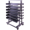 Valley Craft’s Double-Sided Heavy Duty A- Frame Cart provides mobile and customizable solutions for a variety of workstations and storage areas. This heavy duty 12 gauge, fully welded, cart is 38”W x 3”D x 63”H for optimal storage and handling. With a robust 2,5 lb. capacity, this Heavy Duty A-Frame Cart easily maneuvers on (4) 5” phenolic casters (2 rigid, 2 locking swivel). (12) Trays with front lip (1.5"H) are included and can be installed at any height to enhance workflow efficiency. Improve your supply organization with accessory options that include additional trays, tray dividers, hanger bars, spindles, and bins. Tray options include standard (9”D) or large (15”D), either available with a standard (flush) or lipped (1.5 or 3”H) front. Standard (flush) tray fronts create ease for loading and unloading larger items, while lipped (1.5 or 3") tray fronts help contain small parts. Great additions to trays are tray dividers or bins to help organize smaller parts placed within a single tray. Lastly, hanger bars combined with spindles are a great way to improve organization of spools of material or other hanging items. Ideal for 5S as well as other workplace initiatives and improvements, Valley Craft’s Heavy Duty A-Frame Carts have a powder coat paint finish in gray for a premium look that holds up over time. Products are shipped fully assembled, and are made in the U.S.A.
