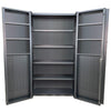 Valley Craft’s 48 x 24 x 84” Deep Door Bin & Shelf Cabinets are the perfect solution to keep your items organized, clean, and secure. 4” deep door design provides additional convenient storage and improved durability. The heavy duty 14 gauge steel construction is fully welded and built to last. This cabinet makes protecting, storing and finding your tools, parts and other supplies simple. This half bins style cabinet has louvered bin brackets on the lower half of the door, and the lower half of the back. These louvers are used to easily hang plastic storage bins for convenient and organized access to parts and supplies. 78 bins are included: 72 XS for the doors, and 6 XL for the interior/back. (3) 18” deep interior shelves are included, easily adjustable on 7 3/8” increments, and with a 1, lb. capacity each. (6) 4” deep door shelves are included, easily adjustable on 4” increments, and with a 1 lb. capacity each. The convenient handle with 3-point locking system helps keep supplies, inventory and other valuables secure (keys included). Additional accessories are sold separately. Valley Craft’s Deep Door Bin & Shelf Cabinets are constructed of heavy duty 14 gauge steel, and have a premium powder coat paint finish in gray. Products are shipped fully assembled, and made in the U.S.A.