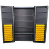 Valley Craft’s 48 x 24 x 78” Deep Door Bin & Shelf Cabinets are the perfect solution to keep your items organized, clean, and secure. 4” deep door design provides additional convenient storage and improved durability. The heavy duty 14 gauge steel construction is fully welded and built to last. This cabinet makes protecting, storing and finding your tools, parts and other supplies simple. This full bins style cabinet has louvered bin brackets on the full-length of the door, and the full-length of the back. These louvers are used to easily hang plastic storage bins for convenient and organized access to parts and supplies. 147 bins are included: 12 XS for the doors, 9 L, 18 XL for the interior/back. The convenient handle with 3-point locking system helps keep supplies, inventory and other valuables secure (keys included). Additional accessories are sold separately. Valley Craft’s Deep Door Bin & Shelf Cabinets are constructed of heavy duty 14 gauge steel, and have a premium powder coat paint finish in gray. Products are shipped fully assembled, and made in the U.S.A.