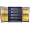 Valley Craft’s 72 x 24 x 84” Bin & Shelf Cabinets are the perfect solution to keep your items organized, clean, and secure. The heavy duty 14 gauge steel construction has a fully welded design that is built to last. This cabinet makes protecting, storing and finding your tools, parts and other supplies simple. This full bins style cabinet has louvered bin brackets on the full-length of the door, and the full-length of the back. These louvers are used to easily hang plastic storage bins for convenient and organized access to parts and supplies. 24 bins are included: 168 XS for the doors, and 24 L/12 XL for the interior/back. Doors utilize premium full length piano hinges to maximize the stability, durability, and longevity of the cabinet. The convenient handle with 3-point locking system helps keep supplies, inventory and other valuables secure (keys included). Additional accessories are sold separately. Valley Craft’s Bin & Shelf Cabinets are constructed of heavy duty 14 gauge steel, are fully welded, and have a premium powder coat paint finish in gray. Products are shipped fully assembled, and made in the U.S.A.