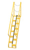 Number of Steps: 10, Top Step Height: 84", Length: 40.04", Step Angle: 68 degrees – Alternating–Tread Stairs – Design offers a shorter span than traditional steps. Features handrail on each side of unit, dual safety chain at top of stair and formed steel steps with raised surfaces for better traction. Rugged welded steel construction. Powder coated safety yellow finish. Ships knockdown for lower freight costs.