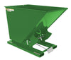 Uniform Capacity (pounds): 4,000, Steel (gauge): 10, Volume (cubic yards): 1–1/2, Fork Pocket Center (in.): 28, Usable Fork Pocket Width (in.): 7–1/2, Usable Fork Pocket Height (in.): 2–1/2, Usable Chute Width (in.): 40, Usable Chute Length (in.): 63–3/4, Usable Chute Height (in.): 41–1/2, Finish: Powder Coat Grey – This Medium Duty Self–Dumping Steel Hopper with Bumper Release automatically dumps when bumper release contacts the side of the dumpster. Hopper returns to an upright and locked position automatically after it dumps. Also includes a cable that may be operated from the seat of the fork truck to manually dump the hopper. A safety restraint is provided to secure the hopper to the fork truck. (Length Dimension is measured at top of chute.)