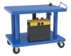Platform Size: 32"W x 48"L, Capacity: 6,000 lbs., Service Range: 54" to 36", Number of Posts: 4, Operation: 12V DC Power – Hydraulic Post Table – Foot–operated hydraulic post lift tables are built for heavy–duty shop use such as lifting dies and castings, moving machine parts, positioning welders' work, leveling feed material for pump presses, conveyors and press brakes, and similar material handling jobs. Posts are telescoping to help stabilize and support loads during operation. Heavy–duty units feature a two–speed foot pump for maximum operator convenience. All foot pumps include a down speed control valve for safe platform lowering. DC units include a 12V DC electric motor to raise and lower the platform. They also include a battery, on–board charger, and a hand control on an 8 ft. coil cord. Units include four swivel casters two swivel with total–locking brakes and two rigid.