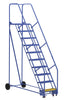 The Rolling Warehouse Ladder is a great addition to material handling and shipping facilities. The powder coated steel construction maintains a strong, durable design throughout a lifetime of use. The steps include a grip strut design that promotes stability while climbing and/or descending the ladder. The bottom step is colored yellow for additional safety and minimization of injuries when traversing the ladder with heavy loads. MFG Part# LAD-10-14-G