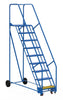 The Rolling Warehouse Ladder is a great addition to material handling and shipping facilities. The powder coated steel construction maintains a strong, durable design throughout a lifetime of use. The steps include a grip strut design that promotes stability while climbing and/or descending the ladder. The bottom step is colored yellow for additional safety and minimization of injuries when traversing the ladder with heavy loads. MFG Part# LAD-10-14-P