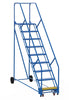 The Rolling Warehouse Ladder is a great addition to material handling and shipping facilities. The powder coated steel construction maintains a strong, durable design throughout a lifetime of use. The steps include a perforated design and a 50° climb angle that promotes stability while climbing and/or descending the ladder. The bottom step is colored yellow for additional safety and minimization of injuries when traversing the ladder with heavy loads. MFG Part# LAD-10-14-P-EZ