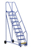The Rolling Warehouse Ladder is a great addition to material handling and shipping facilities. The powder coated steel construction maintains a strong, durable design throughout a lifetime of use. The steps include a grip strut design that promotes stability while climbing and/or descending the ladder. The bottom step is colored yellow for additional safety and minimization of injuries when traversing the ladder with heavy loads. MFG Part# LAD-10-21-G