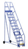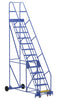 The Rolling Warehouse Ladder is a great addition to material handling and shipping facilities. The powder coated steel construction maintains a strong, durable design throughout a lifetime of use. The steps include a grip strut design that promotes stability while climbing and/or descending the ladder. The bottom step is colored yellow for additional safety and minimization of injuries when traversing the ladder with heavy loads. MFG Part# LAD-12-21-P