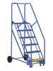 The warehouse ladders are a great addition to the material handling and shipping facilities. The strong welded construction is powder coated for a sleek reliable finish that will stay durable throughout daily use. The ladder construction promotes safety through a bottom yellow step that indicates the end of the unit. The unit can be locked in place by pressing the levers below the bottom step. Once levers are engaged the ladder cannot be moved. A resilient handrail offers stability while climbing and exiting the ladders. MFG Part# LAD-7-14-G