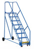 The warehouse ladders are a great addition to the material handling and shipping facilities. The strong welded construction is powder coated for a sleek reliable finish that will stay durable throughout daily use. The ladder construction promotes safety through a bottom yellow step that indicates the end of the unit. The unit can be locked in place by pressing the levers below the bottom step. Once levers are engaged the ladder cannot be moved. A resilient handrail offers stability while climbing and exiting the ladders. MFG Part# LAD-8-14-G-EZ