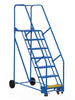 The warehouse ladders are a great addition to the material handling and shipping facilities. The strong welded construction is powder coated for a sleek reliable finish that will stay durable throughout daily use. The ladder construction promotes safety through a bottom yellow step that indicates the end of the unit. The unit can be locked in place by pressing the levers below the bottom step. Once levers are engaged the ladder cannot be moved. A resilient handrail offers stability while climbing and exiting the ladders. MFG Part# LAD-8-14-P