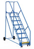 The warehouse ladders are a great addition to the material handling and shipping facilities. The strong welded construction is powder coated for a sleek reliable finish that will stay durable throughout daily use. The ladder construction promotes safety through a bottom yellow step that indicates the end of the unit. The unit can be locked in place by pressing the levers below the bottom step. Once levers are engaged the ladder cannot be moved. A resilient handrail offers stability while climbing and exiting the ladders. MFG Part# LAD-8-14-P-EZ