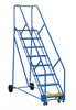 The warehouse ladders are a great addition to the material handling and shipping facilities. The strong welded construction is powder coated for a sleek reliable finish that will stay durable throughout daily use. The ladder construction promotes safety through a bottom yellow step that indicates the end of the unit. The unit can be locked in place by pressing the levers below the bottom step. Once levers are engaged the ladder cannot be moved. A resilient handrail offers stability while climbing and exiting the ladders. MFG Part# LAD-8-21-P-EZ