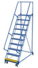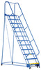 The Standard Slope Ladder is a portable warehouse ladder for every-day use applications. Grip strut steps, handrail included, welded square tubular steel construction with powder-coat blue finish. Rubber feet provided for floor protection. Unit has bottom step lock casters for safe use when climbing. MFG Part# LAD-PW-32-11-G
