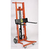 Model #: DPL–54–F. Forks are 18 inches long and 3 inches wide. Foot operated hydraulic pump raises platform, foot release lowers platform. Platform sits 5.75" above the floor. Wheel lock standard. All 54" lifts are 60.5" O.A.H. All 40" lifts are 48.5" O.A.H. DPL–54–F FRAME: 053136. Steel Construction. Weight Capacity: 750 lbs. 8" Moldon Rubber Wheels. 3.5" Polyurethane Casters. Raised Height: 54", Lowered Height: 5.75". Continuous Handle. Floor Lock: Yes. A discount is available for purchases of 10 or more items. Call contractor at 317–867–2911 for details.