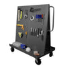 This mobile pegboard with rear shelf storage is designed for professional settings such as industrial workshops, garages, and manufacturing facilities. Combining durability with user-friendly mobility, it enhances organization and efficiency on the job. Built with professionals in mind, this unit ensures easy transportation and secure positioning, making it a reliable asset for your workspace.