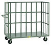 Heavy 12 gauge shelves are enclosed on 3 sides, 48" high above the deck in sturdy 1–1/2" angle iron corners and top trim. 2 swivel, 2 rigid 6" x 2" polyurethane casters with 3,600–lbs capacity. Slat–Type sides come with 1–1/2" x 3/16" slats. Comes with 3 shelves with a 15" clearance. Overall Height: 57". Deck Size: 24" x 60".