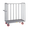 Heavy 12 gauge shelves are enclosed on 3 sides, 48" high above the deck in sturdy 1–1/2" angle iron corners and top trim. 2 swivel, 2 rigid 6" x 2" polyurethane casters with 3,600–lbs capacity. Slat–Type sides come with 1–1/2" x 3/16" slats. Comes with 3 shelves with a 15" clearance. Overall Height: 57". Deck Size: 30" x 60".