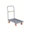 • All-welded steel construction guarantees enduring strength and stability.• Reinforced formed steel deck with 3″ lips ensures secure load retention.• Removable cross-brace handle that extends up to 28″ for efficient maneuvering.• Equipped with 2 swivel and 2 rigid casters featuring non-marking 5″ polyurethane wheels for smooth, damage-free movement.• Ideal for operations that require a reliable and efficient steel deck platform truck.
