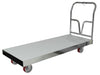 Deck Size: 30"W x 48"L, Platform Height: 10", Capacity: 3,600 lbs. – Aluminum Sheet Deck Platform Truck – Tough but lightweight, this truck is made of smooth aluminum for durability. Includes one removable high–polished steel handle. Two rigid and two swivel 5" x 2" poly–on–steel casters are standard. Ideal for commercial, industrial, and warehouse areas.