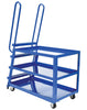 Total Capacity: 1,000 lbs., Capacity per Shelf: 500 lbs., Bottom Shelf Size: 28"W x 52"L, Top Shelf Height: 63", Shelf Clearance: 27" – Hi–Frame Stockpicker Truck w/ 5" x 2" Poly–on–Steel casters – These oversized units are perfect for large jobs. Ideal for oversized cartons, boxes, parts, and supplies. A spring loaded ladder for sure, safe climbing, and loading. Steps have non–skid footing with self–cleaning surface. Each unit features three shelves. 5" x 2" Poly–on–Steel casters, 2 rigid, 2 swivel. Durable steel construction. Steel units and ladders are powder coated a blue finish.