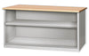 Cabinet bench includes factory installed sliding doors equipped with cylinder lock and 2 keys. Unit comes with one shelf. Shelves adjustable on 4" centers. Wood Top. Dimensions: 30" x 60" x 34".