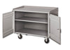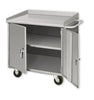 Equipped with removable 1/4" pressed wood top and a 1/4" lip in front to prevent items from falling off. Unit has 8" high steel clipboard holder with a 70 degree slope to the back. Casters included. Dimensions: 36"W x 26"D x 38–1/4"H front, 46–3/4"H back. Capacity: 500 lbs.