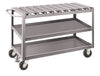Designed for sliding dies and heavy items on and off top with safety to fingers and hands. Use with slings or grabs to easily transfer items. 12 gauge top, formed double channel. Slats are 3"W x 1–1/2"D and spaced 1–1/2" apart. Shelf clearance is 10–1/8" on 3 shelf models. All models have a 6–1/2" floor clearance. Semi–Steel Casters. 2,000–lbs Capacity. Dimensions: 24"W x 30"L x 32.5"H. Options: Floor lock, wheel lock, flat bottom shelf.