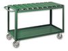 Designed for sliding dies and heavy items on and off top with safety to fingers and hands. Use with slings or grabs to easily transfer items. 12 gauge top, formed double channel. Slats are 3"W x 1–1/2"D and spaced 1–1/2" apart. Shelf clearance is 10–1/8" on 3 shelf models. All models have a 6–1/2" floor clearance. Phenolic Casters. 2,000–lbs Capacity. Dimensions: 24"W x 48"L x 32.5"H. Options: Floor lock, wheel lock, flat bottom shelf.
