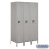 18" Wide Single Tier Standard Metal Locker - 3 Wide - 6 Feet High - 21 Inches Deep - Gray - Assembled