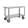 All-welded construction features flush 12 gauge steel shelves with extra reinforcement and 2" x 2" corner angles for increased capacity. Top shelf is 36" high. Clearance between shelves is 23" for 2-shelf models, and 10-1/2" for 3-shelf models. More maneuverable with heavy-duty 8" phenolic kingpinless casters. Durable powder coated finish.