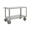 • All-welded construction using flush 12-gauge steel for maximum stability• Reinforced with 2″ x 2″ corner angles to support increased capacity• Durable powder-coated finish for long-lasting corrosion resistance• Top shelf set at 36″ with clearance options: 23″ for 2-shelf models and 10½″ for 3-shelf models• Heavy-duty 8″ phenolic kingpinless casters that enhance maneuverability, with alternative caster configurations (wheel brakes, floor lock, or swivel position lock) available