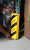 A Steel Pipe Safety Bollard can be used both indoors and outdoors to protect work areas, racking and personnel. Molded plastic caps are removable and bollard may be filled with concrete. Base plate includes pre-drilled mounting holes. The unit has a yellow powder coat finish and a heavy-duty welded steel construction.