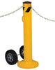 The Movable Bollard with Chain Slots provides a portable visual barrier when an area needs temporary protection. Create barriers around workstations, machinery, and outdoor spaces by placing chain into chain slots, storing any excess chain inside the bollard, and placing the cap back onto bollard. The chain slots hold chain connected to other bollards. Removable bolt-on steel top cap with socket set-screw. Ideal for use when keeping traffic out of a temporarily hazardous area or area under repair. Can be used indoors or outdoors. Powder coated yellow for high visibility.
