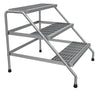 This Mobile Portable Two-Step Ladder is designed for access to hard-to-reach places. Tubular steel construction. This unit has perforated steel steps. Wheels allow for easy tilt and roll portability.