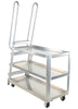 These oversized units are perfect for large jobs. Ideal for oversized cartons, boxes, parts, and supplies. A spring loaded steel ladder for sure, safe climbing, and loading is featured on both the SPS and SPA models. Steps have nonskid footing with self-cleaning surface. Each unit features three shelves. Standard 4" x 2" mold-on-rubber casters, 2 rigid and 2 swivel with brake. Built of durable steel or aluminum construction. Steel units have a blue baked-in powder coated finish for toughness, while the steel ladders included on the aluminum units have a baked-in silver powder coat finish.