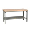 Smooth 12 gauge steel top is double–reinforced with angle iron on the underside and gussets in the corners for exceptional strength and rigidity. Legs and lower braces are 1–1/2" x 1–1/2" x 3/16" thick angle iron. Legs have 2" square footpads with 9/16" hole for mounting to the floor. Angle iron cross braces are centered to allow leg room on both sides. These all–welded units ship fully assembled and ready for immediate use. 36" overall height. Capacity: 5,000–lbs. Dimensions: 24" x 60".