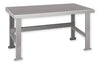 All models are constructed of 12 gauge steel tops & legs. 16 gauge stringers & shelves. The top, stringer & legs are reinforced for extra strength. No assembly is required. Standard height is 32–1/2". All benches 96" or longer have additional center legs. Options: Adjustable legs, electrical knockouts, 34"H, drawer units, cylinder lock on drawers.