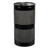 Landscape Series™ 34–gal perforated trash receptacle with retainer bands for liners in Coffee Gloss. Heavy–gauge Steel with fully welded construction and bottom drainage holes prevent water build–up. Two 1" dia. Holes halfway up sides allow unit to be secured with a chain to help prevent theft. EXL–COAT™ powder coat finishes.