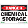 ZING Eco Safety Sign "DANGER CHEMICAL STORAGE" communicates critical messages that inform of designated areas and important safety precautions. Sign is made from high quality 70% post-consumer recycled plastic that is UL Validated for recycled content which substantiates material compliance with various green codes, standards, and procurement policies including the LEED Green Building Rating System, IgCC, GSA Advantage, ASHRAE 189.1 and others. Recycled material supports sustainability initiatives and LEED credits. Sign measures 7"H x 10"W and includes 4 mounting holes and adhesive tabs. Made in the USA.
