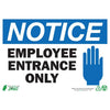 ZING Eco Safety Sign "NOTICE EMPLOYEE ENTRANCE ONLY" communicates critical messages that inform of designated areas and important safety precautions. Sign is made from high quality 94% recycled aluminum that is UL Validated for recycled content which substantiates material compliance with various green codes, standards, and procurement policies including the LEED Green Building Rating System, IgCC, GSA Advantage, ASHRAE 189.1 and others. Recycled material is also EPA CPG Listed and supports sustainability initiatives and LEED credits. Sign measures 7"H x 10"W and includes 4 mounting holes. Made in the USA.