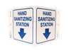 ZING Projecting V Sign, "Hand Washing Station," clearly designates hand washing locations. The two-sided projecting design significantly increases visibility, and is ideal for communicating critical safety messages. The sign is made in the USA from 70% post-consumer recycled plastic, and measures 7"H x 12"W x 5" projecting. The sign features pre-drilled mounting holes, and comes with adhesive tabs for easy installation. Recycled materials support sustainability initiatives and LEED credits.