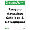 ZING Green at Work Sign "Plastic Only" with recycle symbol, encourages green recycle strategies and guides on where to deposit recyclable materials. Sign is made from high quality 70% post-consumer recycled plastic that is UL Validated for recycled content which substantiates material compliance with various green codes, standards, and procurement policies including the LEED Green Building Rating System, IgCC, GSA Advantage, ASHRAE 189.1 and others. Recycled material supports sustainability initiatives and LEED credits. Sign includes self adhesive pads for easy mounting and measures 14"H x 10"W. Made in the USA.