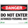 ZING Eco Safety Sign "DANGER DO NOT ENTER AUTHORIZED PERSONNEL ONLY" communicates critical messages that inform of designated areas and important safety precautions. Sign is made from high quality 70% post-consumer recycled plastic that is UL Validated for recycled content which substantiates material compliance with various green codes, standards, and procurement policies including the LEED Green Building Rating System, IgCC, GSA Advantage, ASHRAE 189.1 and others. Recycled material supports sustainability initiatives and LEED credits. Sign measures 10"H x 14"W and includes 4 mounting holes and adhesive tabs. Made in the USA.