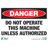 ZING Eco Safety Sign "DANGER DO NOT ENTER, AUTHORIZED PERSONNEL ONLY" communicates critical messages that inform of designated areas and important safety precautions. Sign is made from durable high-impact recycled polystyrene self-adhesive that is resistant to solvents, moisture, scuffing and UV exposure as well as having high tear resistance. Recycled material is a minimum of 70% post-industrial and supports sustainability initiatives and LEED credits. Sign measures 10"H x 14"W. Made in the USA.