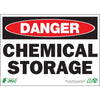 ZING Eco Safety Sign "DANGER CHEMICAL STORAGE" communicates critical messages that inform of designated areas and important safety precautions. Sign is made from durable high-impact recycled polystyrene self-adhesive that is resistant to solvents, moisture, scuffing and UV exposure as well as having high tear resistance. Recycled material is a minimum of 70% post-industrial and supports sustainability initiatives and LEED credits. Sign measures 10"H x 14"W. Made in the USA.
