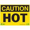 ZING Eco Safety Sign "CAUTION HOT" communicates critical messages that inform of designated areas and important safety precautions. Sign is made from durable high-impact recycled polystyrene self-adhesive that is resistant to solvents, moisture, scuffing and UV exposure as well as having high tear resistance. Recycled material is a minimum of 70% post-industrial and supports sustainability initiatives and LEED credits. Sign measures 10"H x 14"W. Made in the USA.